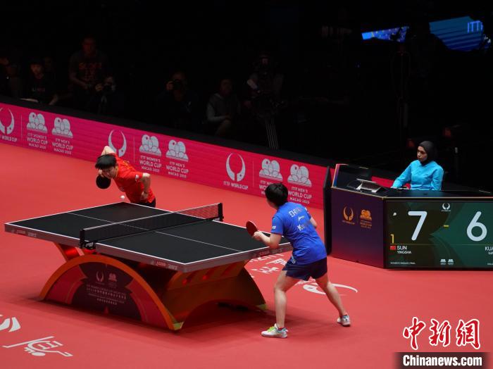 中新社澳门4月21日电 (记者 郑嘉伟)2025年国际乒联男子及女子世界杯决赛20日晚在澳门举行。中国选手孙颖莎夺得女单冠军,巴西选手雨果·卡尔德拉诺斩获男单冠军。