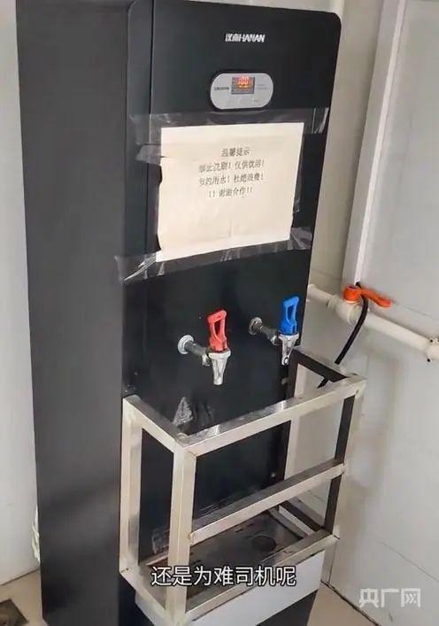 甘肃省高速公路服务集团有限公司安全环保部部长郑荣解释说,甘肃部分国道服务区水质较差,为提升服务质量并保障过往司乘人员及时饮水、安全饮水,公司在部分水质较差的服务区配置了具备过滤、净化功能的热水器,仅供司乘人员饮用。但个别司乘人员仍在净水器上大量接取饮用水作为生活用水使用,造成净化水的浪费以及很多人排队接不到饮用水的情况。因此,服务区安装了相应装置,并在净水器处贴有提示标牌,明确提示可在洗手池处接取生活热水,避免个别司机使用大桶接饮用水给他人造成不便。