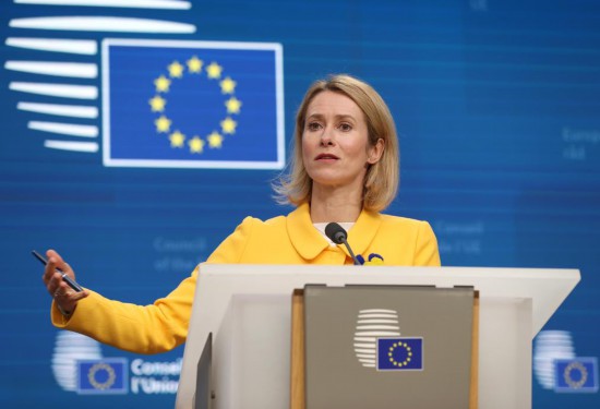 2月24日,欧盟外交与安全政策高级代表卡拉斯在比利时布鲁塞尔出席新闻发布会。新华社记者 赵丁喆 摄