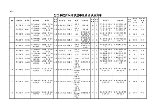 附:全国中成药采购联盟中选企业供应清单(仅包括313个第三批新品品规)