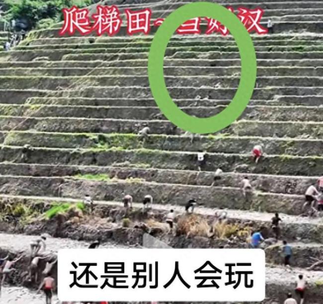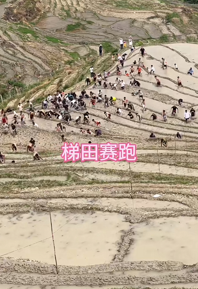 5月3日,广西桂林龙脊梯田景区举办了一场“爬梯田做好汉”的比赛活动。比赛前三名有现金奖励,第一名可获得600元。然而,在相关视频中,有网友发现前两名选手似乎从半坡起跑,涉嫌作弊。