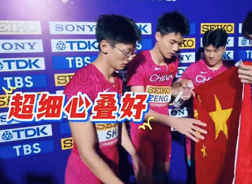 中国田径队的国旗礼仪。