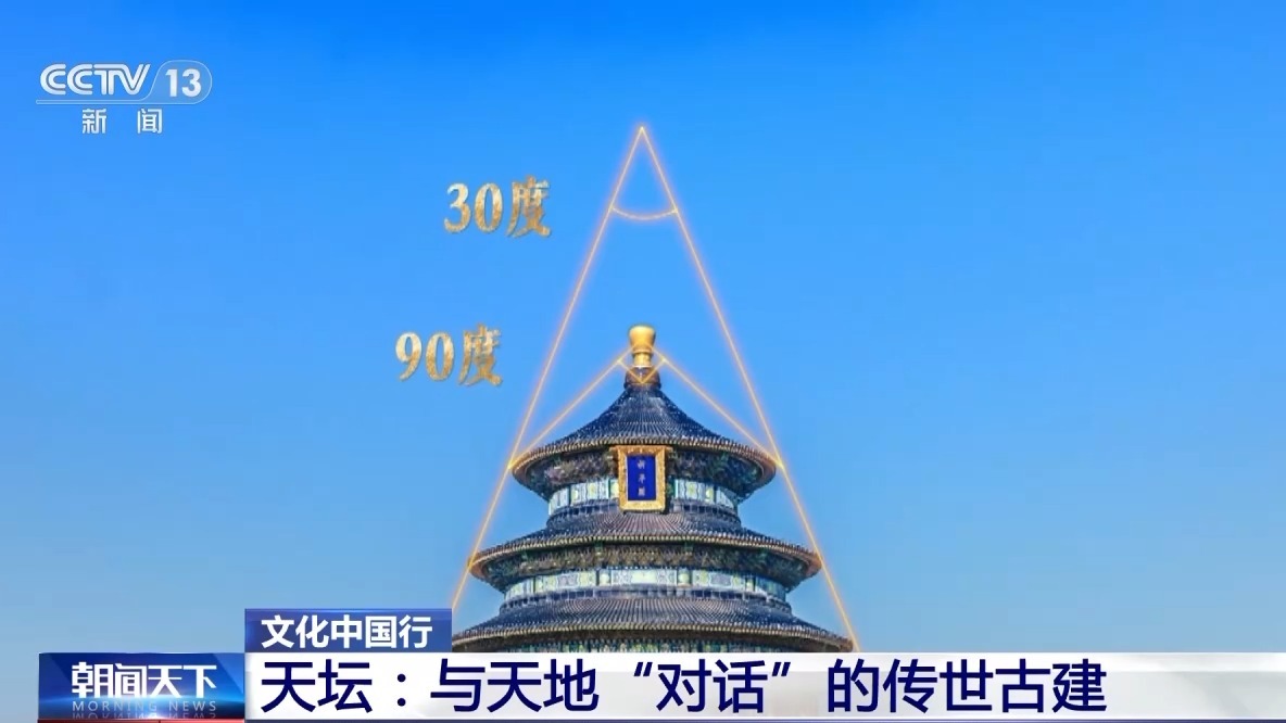 专家介绍,如果将祈年殿三层屋顶边线相连,与鎏金宝顶中线在天空相交,夹角近三十度,而连接最上层屋顶边沿与中线,又可以构成近乎九十度的直角,呈现完美稳定的三角形构图。祈年殿的设计既尽显建筑的和谐之美,又兼顾了实用性。