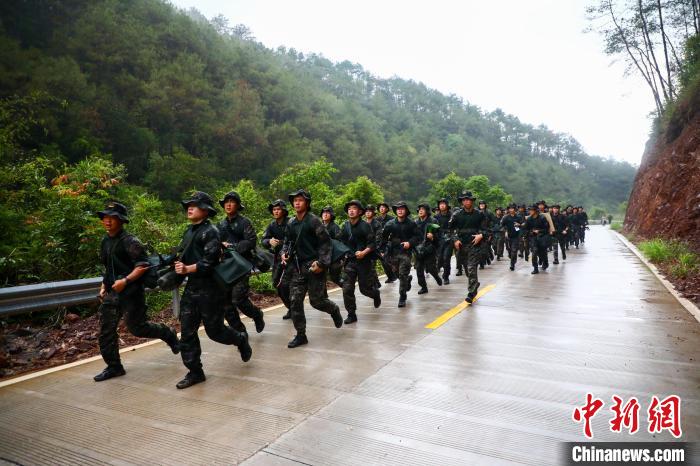 图为官兵们正在进行武装奔袭。朱辉煌 摄