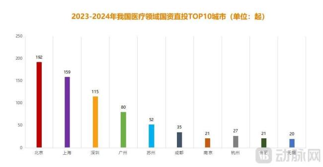 图6.2023-2024年我国医疗领域国资直投TOP10城市(动脉网制图)