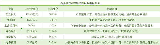 与此同时,海外市场成为财务压力的放大器。2024年境外收入占比首次超过国内,达53.48%,但境外毛利率却暴跌6.74个百分点,对此,石头科技方面称,受到关税成本等增加的影响。