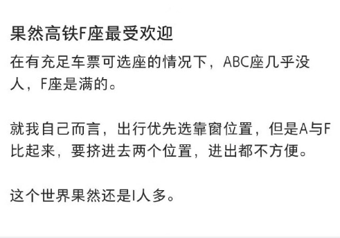 果然高铁F座最受欢迎,长途F直接睡觉,超级爽。