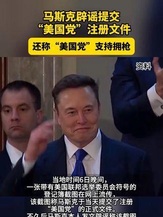 马斯克辟谣提交美国党注册文件,还称“美国党”支持拥枪。