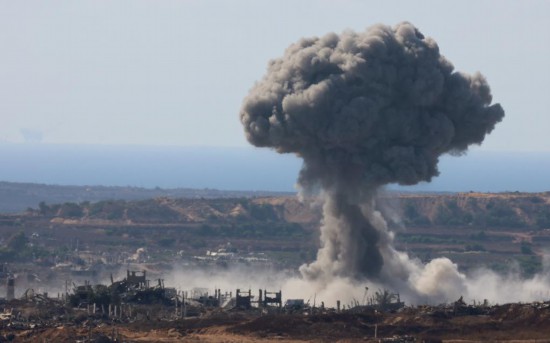 这是7月7日从加沙边境以色列一侧拍摄的加沙地带遭袭后升起浓烟。新华社发(吉尔·科恩·马根摄)