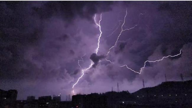 在社交媒体上,许多网友晒出了自己拍摄的视频和画面,有人调侃说:“深圳的大神太多,所以雷电也多。”从这些视频中可以看到,银色叉状闪电像倒挂的树枝,照亮了夜空。
