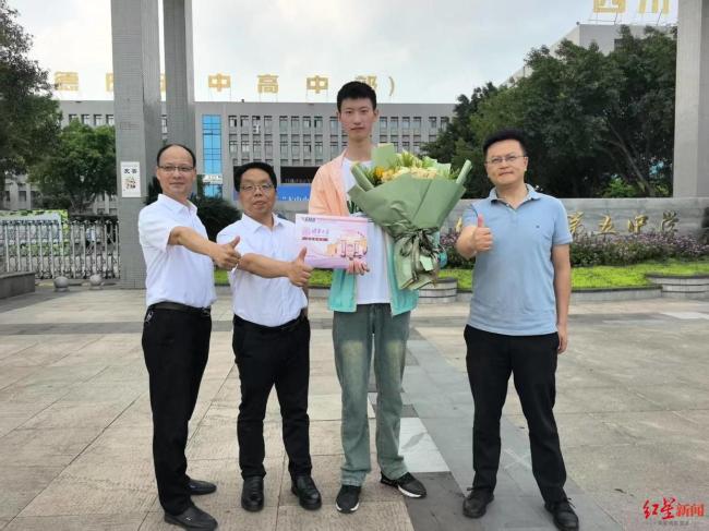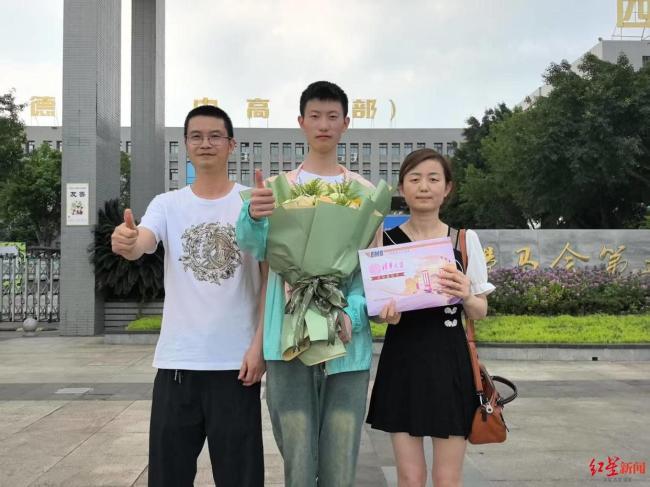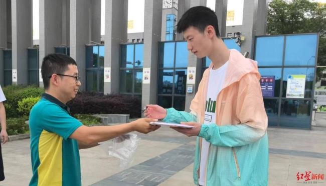 7月13日,德阳五中学生周子聪收到了清华大学理论与应用力学专业(行健书院)的录取通知书,成为德阳市首个收到大学录取通知书的学生。当天下午,在家长陪同下,周子聪来到德阳五中高中部,邮政揽投员核对了他的准考证和身份证后,将录取通知书连同一束鲜花交到了他手中。