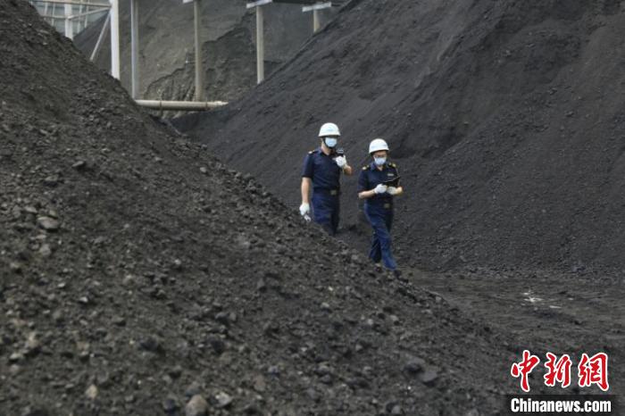 7月15日,上海吴淞海关关员对进口电煤进行监管。王卓飞 摄