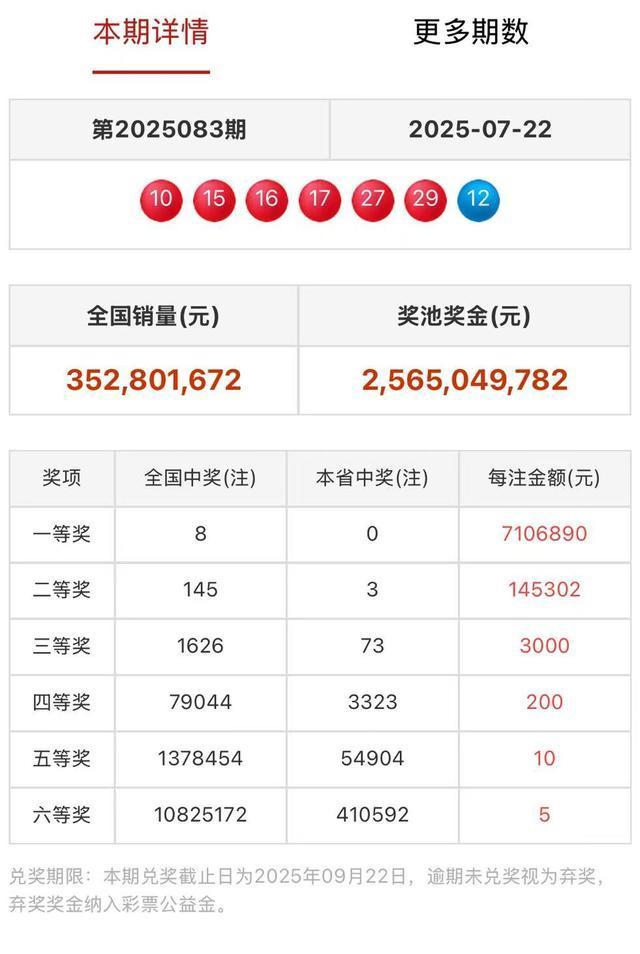 双色球开出8注710万大奖 再出3连号 安徽福彩网更新开奖结果!7月22日晚,安徽福彩网更新了彩票开奖公告,其中,双色球开出八注710万大奖。具体如下:双色球快乐815选5