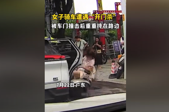 7月22日,广东。这一下撞的不轻。女子骑车遭遇开门杀,被车门撞到后重重摔在路边。