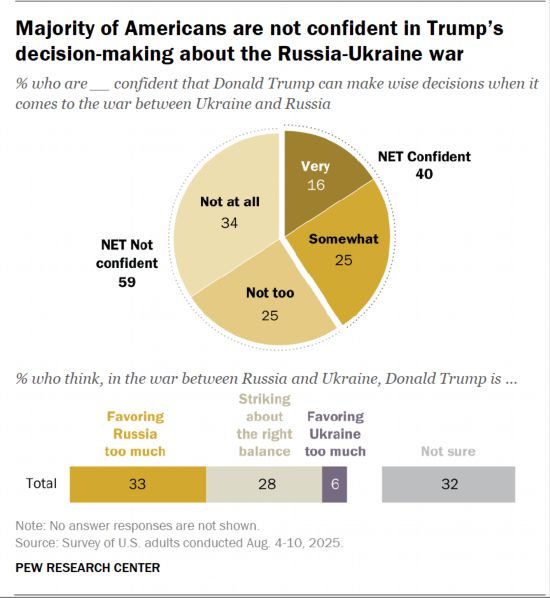 皮尤研究中心14日公布的民调结果显示,59%的受访美国民众表示对特朗普就俄乌冲突做出明智决定没有信心,比2024年7月特朗普作为总统候选人时相关民调结果上升了7个百分点。