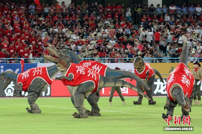 常州队主场赛场上,当地恐龙园的招牌形象令人印象深刻。泱波摄。