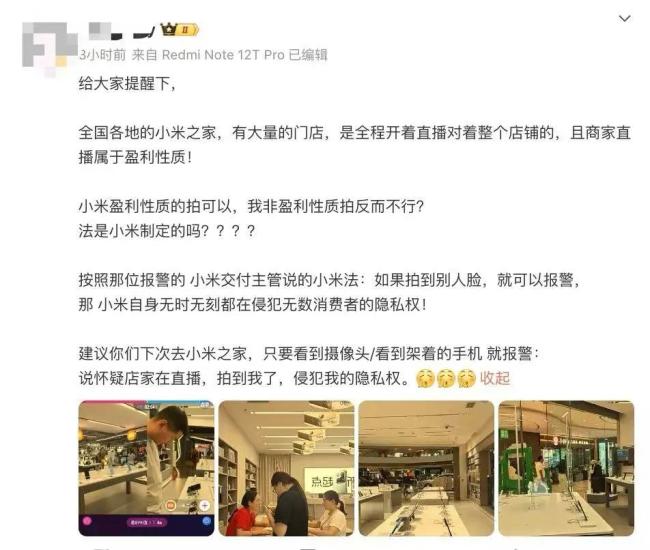 另外,对于上述交付中心主管提到的“直播涉嫌侵犯其他用户隐私权”,该车主8月18日也发微博反驳,称小米之家有大量的门店,是全程开着直播对着整个店铺,且商家直播属于盈利性质。“小米盈利性质的拍可以,我非盈利性质拍反而不行?法是小米制定的吗????按照那位报警的小米交付主管说的小米法:如果拍到别人脸,就可以报警,那小米自身无时无刻都在侵犯无数消费者的隐私权!”该车主说道。