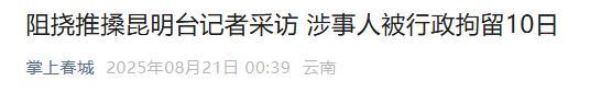 此前报道指出,中国记协官微8月20日发文提到,昆明广播电视台记者在业主家实地了解情况并采访业主时,突遇施工方三名男子粗暴阻挠,辱骂、推搡,拍打拍摄设备。面对记者表明身份并强调正当采访权利时,一名施工方男子言语威胁并动手推搡,导致记者后脑勺被设备砸中,手腕扭伤,拍摄设备受损。记者报警后,警方迅速介入调查。