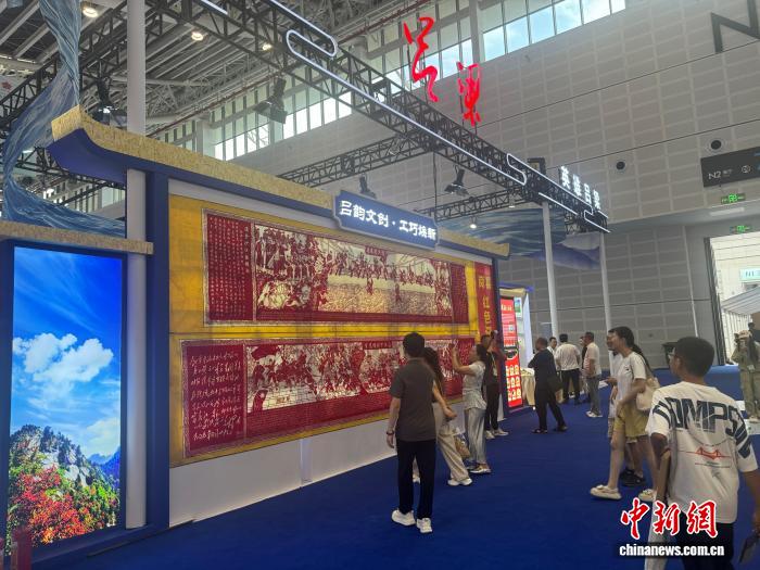 中新网太原8月25日电 (记者 杨静)第七届山西文化产业博览交易会8月21日至25日在山西太原举行。吕梁展馆以“汾酒故乡英雄吕梁”为主题,通过五大板块集中呈现红色基因、非遗传承、生态文旅等多重文化元素,吸引众多观众驻足体验。