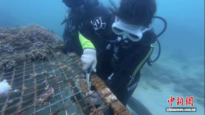 中新网三亚8月25日电 题:给鱼儿盖房,为珊瑚安家:三亚蜈支洲岛“种”一片海底花园