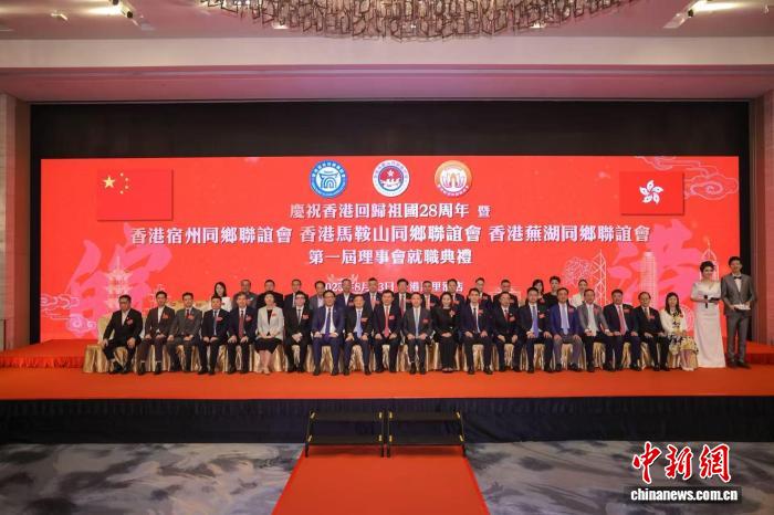 中新网香港8月25日电 “庆祝香港回归祖国28周年暨香港宿州同乡联谊会、香港马鞍山同乡联谊会、香港芜湖同乡联谊会第一届理事会就职典礼”23日晚在香港举办。