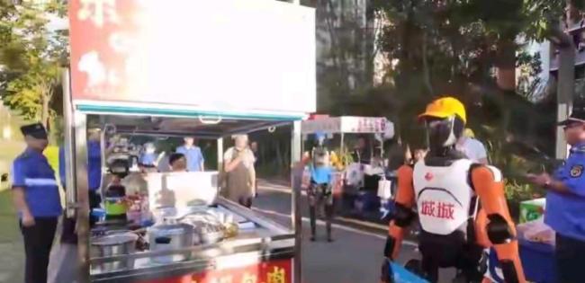 面对摊贩时,机器人更是“技能全开”。不仅能及时、精准地做出清晰的劝导手势,屏幕上还同步显示着丰富的表情包。一会儿眨眨眼卖萌,一会儿又一脸严肃地提醒,那模样别提多有趣了。这样的劝导方式,一下子就缓解了原本可能剑拔弩张的紧张氛围。摊贩们看着这两个新奇的小家伙,也都没了抵触情绪。有摊主坦言:“被机器人盯着有点好笑,但不觉得被针对,它说话客气,咱也得听劝。”
