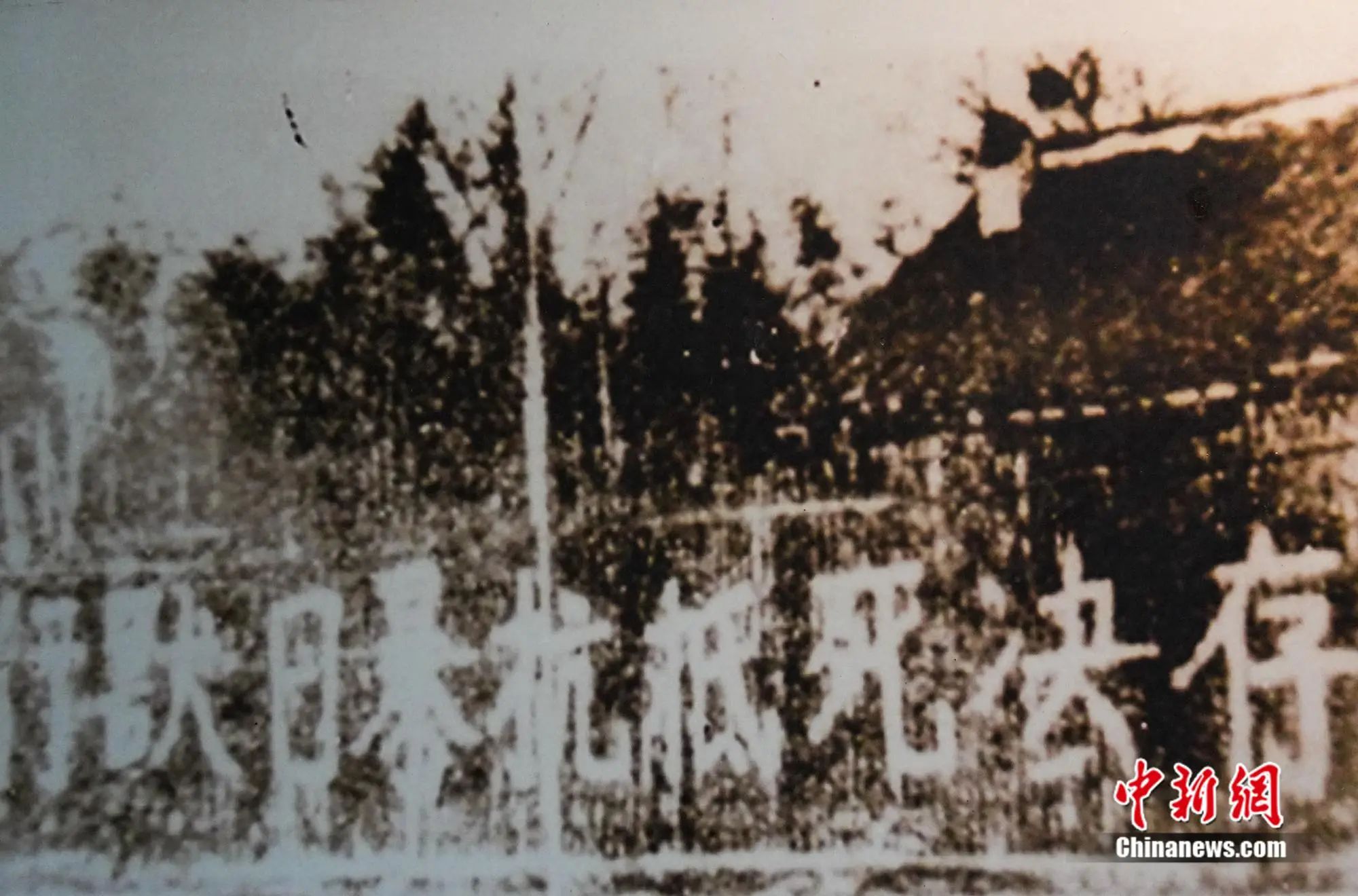 中美联合空军混合团第五大队在老河口机场合影。(翻拍于第五战区司令长官部旧址)张倩龙 摄