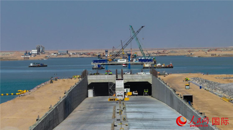 中交天航局承建的连通法奥港和原先旧港乌姆盖萨尔港的海底隧道。人民网 伊纳斯·易卜拉欣摄