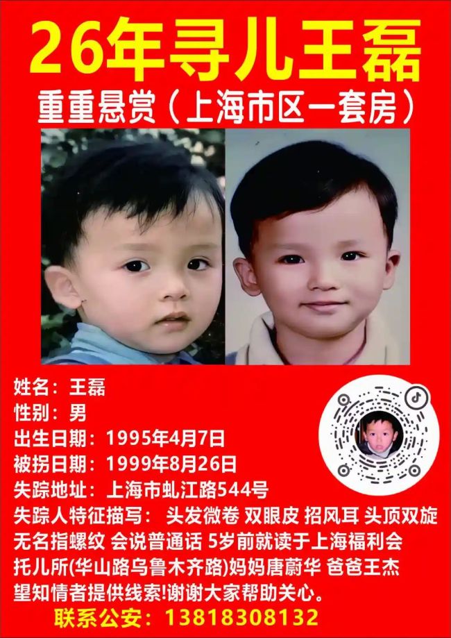 唐女士提到,位于闵行区锦江乐园附近的一套一楼的房子,前后各有一个院落,市场价高达数百万元。这套房子既是爷爷留下的遗产,也是王磊小时候生活过的地方。遵照爷爷的遗愿,房子将用于奖励提供直接线索找到孙子的人。王磊是王家六代单传的男孩,他爷爷寻回孙子的愿望至死未能实现。