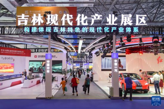 参观者在第十五届中国—东北亚博览会吉林现代化产业展区参观(8月28日摄)。新华社记者 许畅 摄