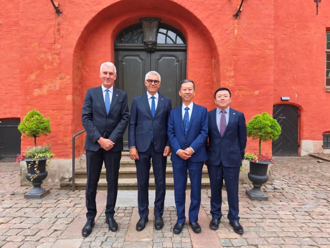 中国驻瑞典大使崔爱民与瑞典哈兰省省督托恩贝里合影。中国驻瑞典大使馆供图