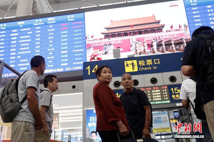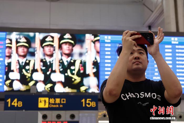 图为在铁路上海虹桥站候车大厅,旅客观看视频直播。中新社记者 殷立勤 摄
