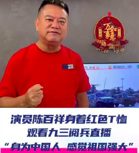 9月3日是中国人民抗日战争暨世界反法西斯战争胜利80周年纪念日,中国香港演员陈百祥身着红色T恤,在家观看九三阅兵直播。第一现场原创采访陈百祥表示:身为中国人,感觉祖国强大,大家看到我们中国是爱好和平的,军事力量方面一定要强大,支持祖国。