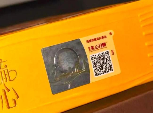 蓝鲸记者获得的一盒山寨美心月饼显示,其外包装与正品几乎无异,防伪标签、生产日期、产品条码等一应俱全。唯一可以辨别真伪的是外包装上的防伪码。