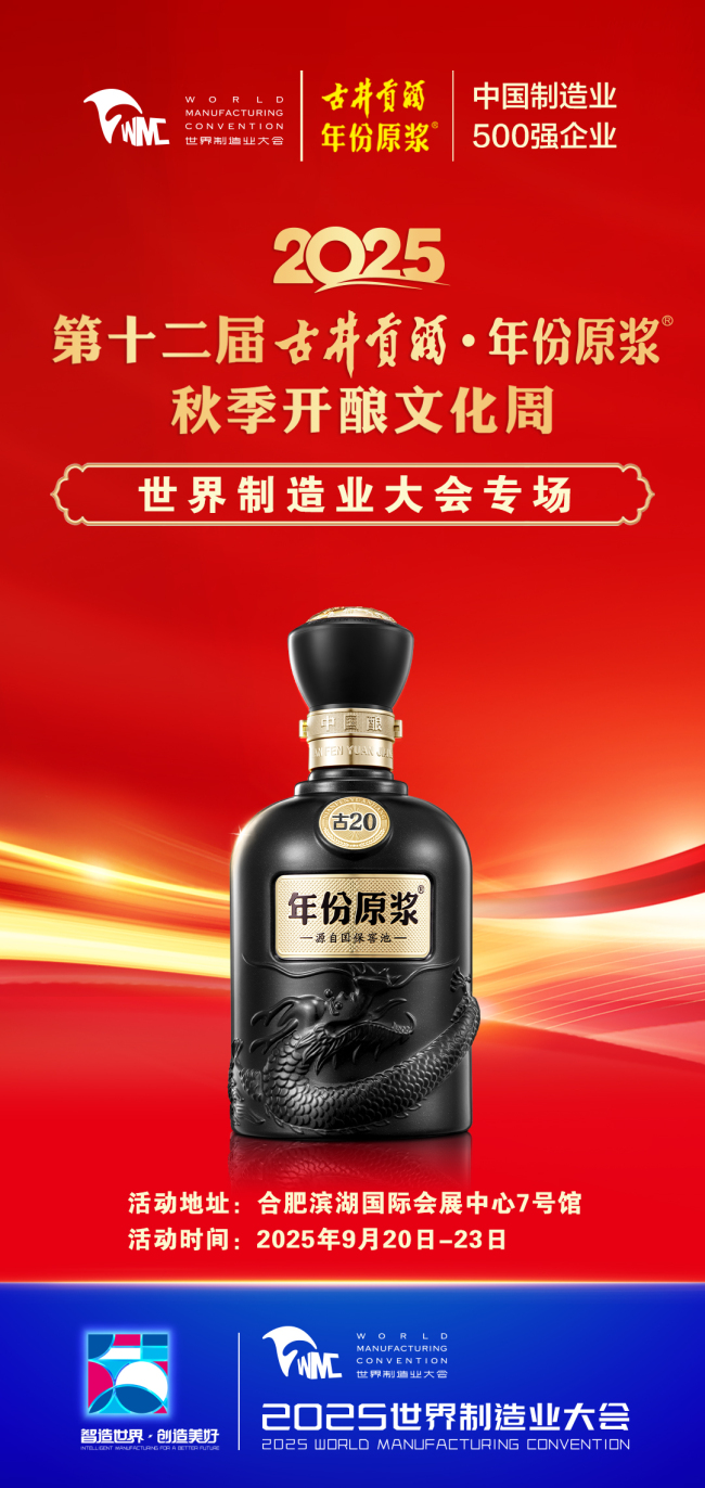 作为古井贡酒的四大重要品牌IP之一,秋酿活动首次开创了2025第十二届古井贡酒·年份原浆秋季开酿美酒文化周。9月19日至23日,“亳州古井酒神广场”与“合肥世界制造业大会专场”的双城联动就此开启!