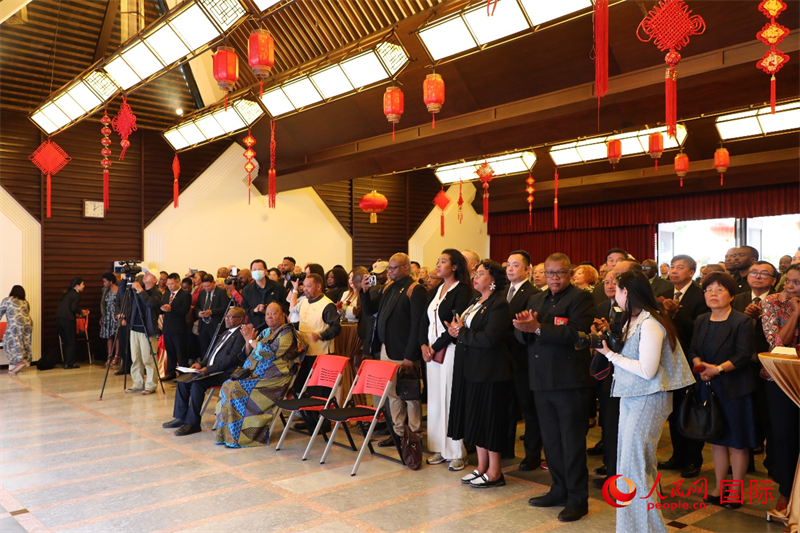 招待会现场,来自中国文化和国际教育交流中心南非孔子课堂的师生合唱歌曲。人民网记者 戴楷然摄