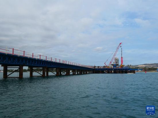 这是9月25日在突尼斯比塞大市拍摄的比塞大大桥栈桥及钢结构施工平台。新华社记者 黄灵 摄
