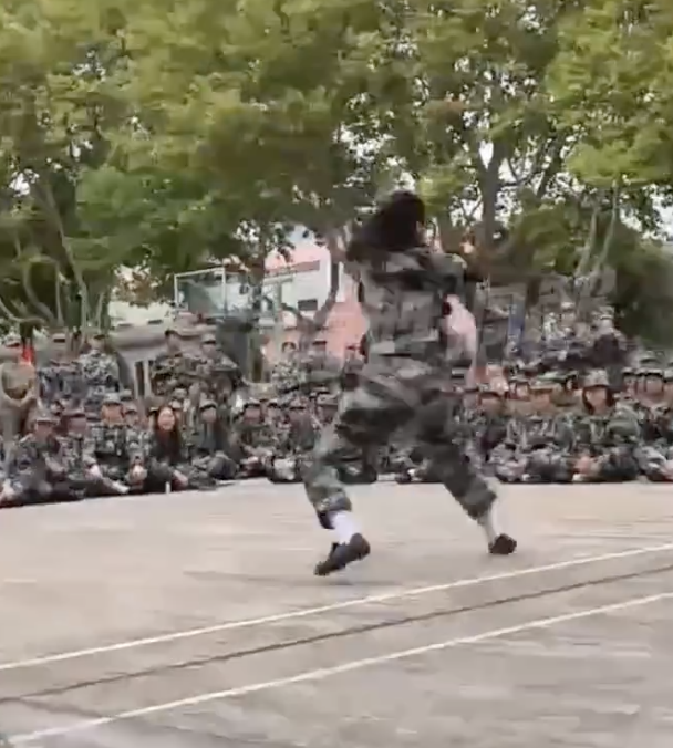 军训期间女生打出一套武当拳。9月26日,安徽某校军训期间一名女生表演武当拳,动作行云流水,飒爽英姿引发全场喝彩,视频经网络传播后获赞“青春最美的样子”。