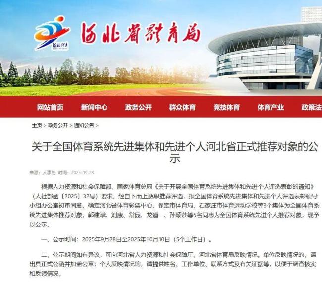孙颖莎入选全国体育系统先进个人 乒坛新星闪耀国际赛场。9月28日,河北省体育局官方网站公示了全国体育系统先进集体和先进个人的推荐对象名单。郭建斌、刘康、常园、龙道一、孙颖莎等五人被列为先进个人推荐对象。