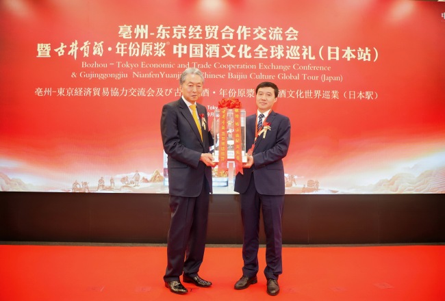 日本前首相鸠山由纪夫先生受邀出席活动,并与亳州市委常委、副市长钟治峰等嘉宾一起共同为“古井贡酒年份原浆文化研究院-东京中心”揭牌。
