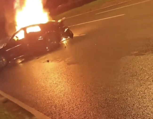 小米SU7超速行驶起火 车门无法打开。10月13日讯 据曝料称,成都天府大道今天10月3日凌晨3时16分突发一起惨烈事故:一辆小米SU7快速行驶中与绿化带发生碰撞后起火燃烧,有人试图打开车门援救未果。