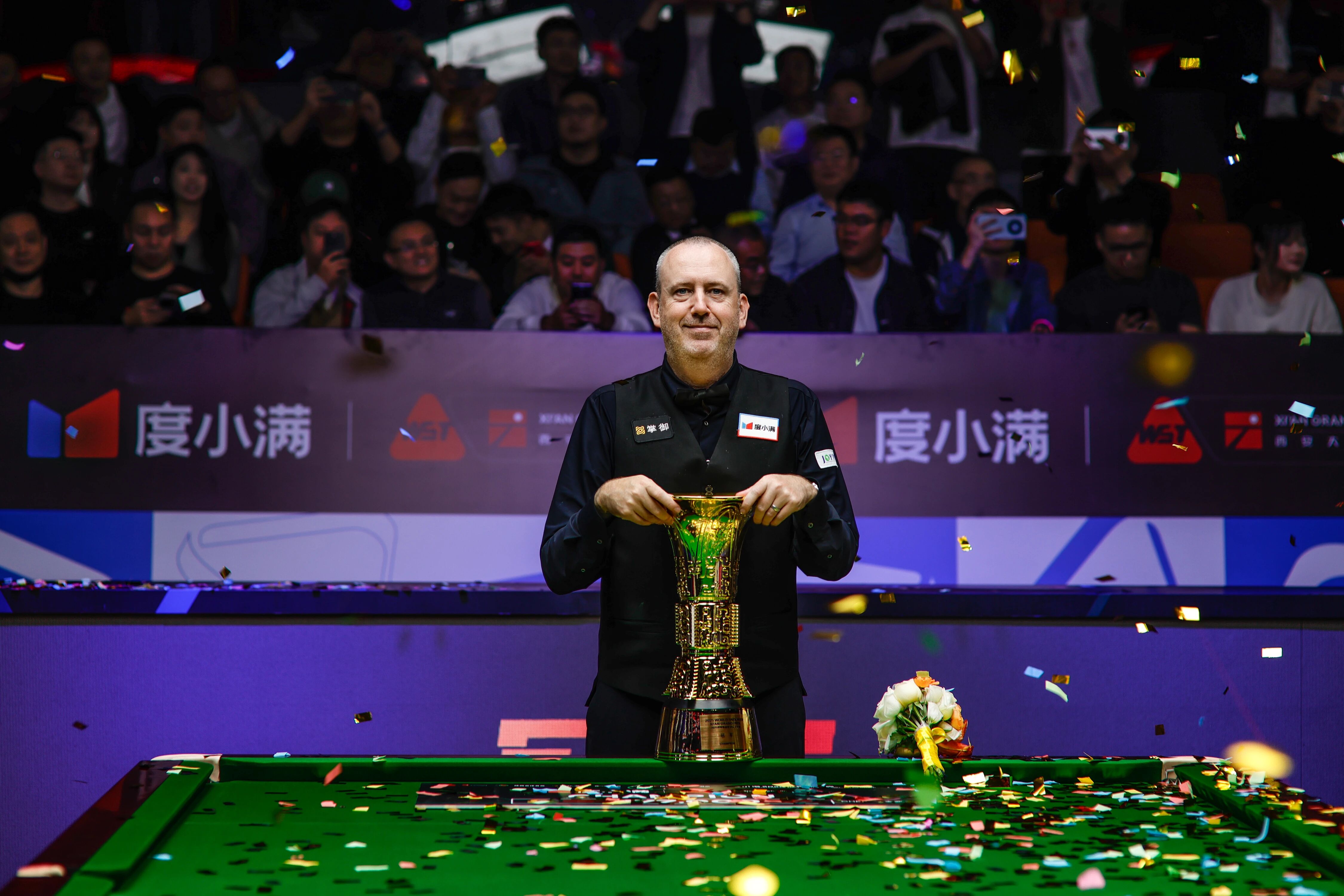 中新网10月14日电 面对携13连胜之势进入决赛的肖恩·墨菲,已经年过五旬的马克·威廉姆斯用两杆破百及八杆50+予以回应。在13日结束的2025世界斯诺克·西安大奖赛决赛中,威廉姆斯以10:3击败墨菲,在收获职业生涯第27个排名赛冠军的同时,以50岁206天的年龄成为史上最年长的排名赛冠军。