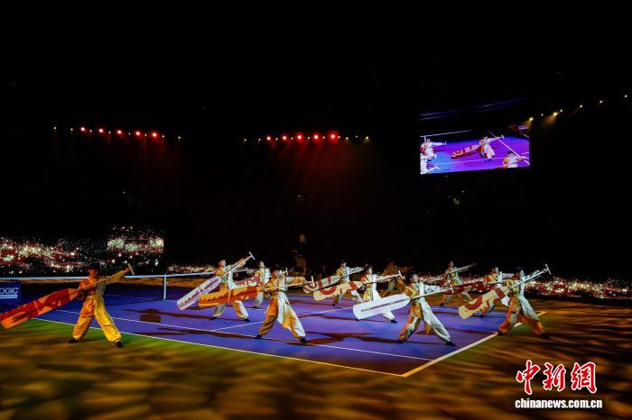 中新网宁波10月14日电(张煜欢 肖健)金秋十月,“茶花赛场”上灯光璀璨,10月13日晚,2025奥克斯·宁波网球公开赛开幕式在宁波(鄞州)网球中心举行。现场灯光与音乐交织,科技与艺术共融,开场表演《羽人竞渡》更展现了宁波人团结拼搏、勇毅前行的精神。在现场数千位观众的共同见证下,中心赛场的“茶花”屋顶徐徐开启,象征着这场世界级网球盛宴正式拉开序幕。