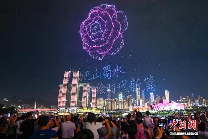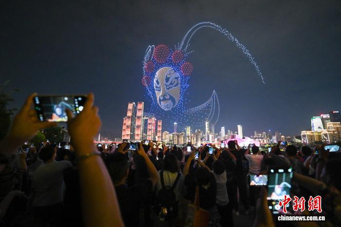 图为无人机灯光秀展现川剧变脸。中新社记者 何蓬磊 摄