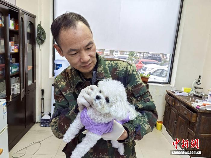 10月29日,钱勇为宠物做检查。高淑蕊 摄