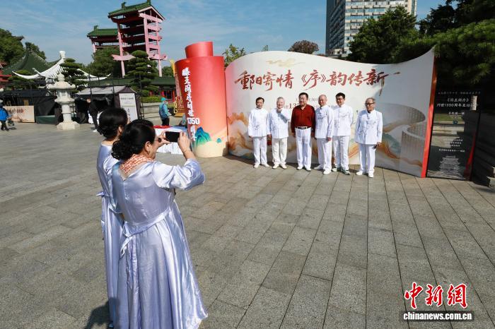 10月29日,正值重阳节,江西南昌滕王阁旅游区举办第八届金婚盛典活动,50对金婚夫妇齐聚滕王阁下,共度重阳佳节并庆祝金婚仪式。图为老年合唱团正在拍照留念。中新社记者 刘思伟 摄