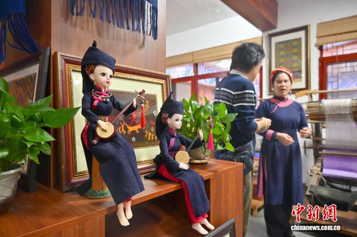 图为李素英创作含有壮、瑶、苗民族元素的织锦作品。俞靖 摄