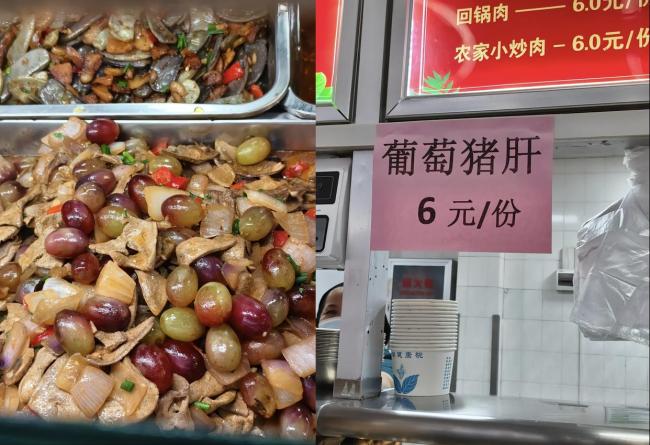 相关帖子的配图显示,这道葡萄炒猪肝售价6元一份,一大盘炒好的猪肝内除了洋葱辣椒等常规配菜外,还混合着许多葡萄。7日,有记者联系到发帖网友,她表示这道新奇的菜肴出现在中南民族大学学生二食堂,自己虽然没有尝试过,但之前吃过学校推出的西芹草莓,觉得味道不错。