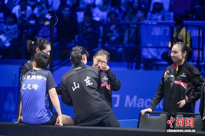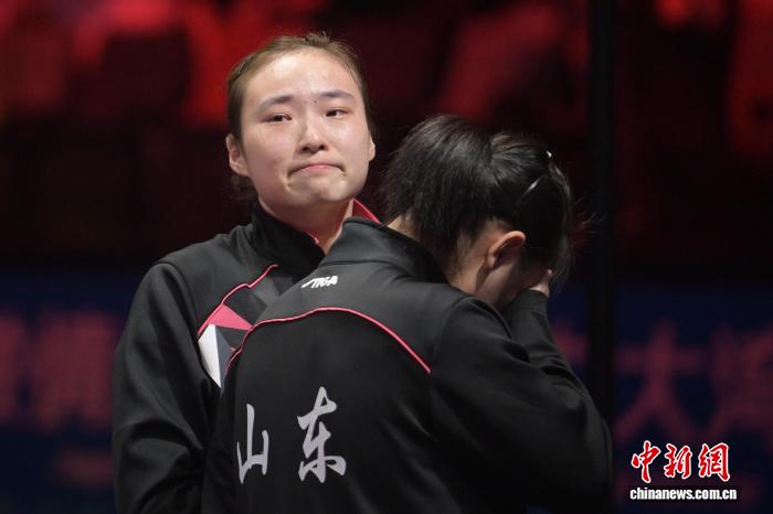 图为山东队夺冠后,选手陈梦(右二)落泪。中新网记者 陈永诺 摄