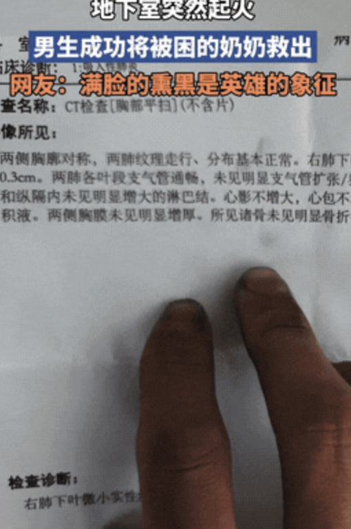 男生单手抱奶奶逃出火场。17岁少年背奶奶冲出火海,结局让人揪心又感动!江苏一地下室突发大火,浓烟滚滚!一名17岁少年,关键时刻没慌神。他果断背起行动不便的奶奶,冲向生的希望。两人成功逃出,脸上被烟尘熏得黑黑的,但人没事!因为情况太紧急,少年没时间找湿毛巾。他要单手抱紧奶奶,另一只手扶着楼梯往下冲。结果,两人都吸入了大量有毒烟尘。虽然人没被火烧到,但烟尘伤了肺。爷孙俩都住进了医院,被诊断为吸入性肺炎。这提醒我们,火灾里最致命的往往是“看不见的杀手”:浓烟!小编建议家里备好灭火器、防烟面罩,关键时刻真能用上!为勇敢的少年点赞!也提醒大家,安全无小事,防患于未然最重要!